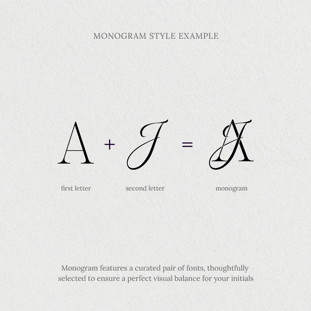 - Monogram and Monogram in frame (border) with a name(s) and date (or tagline) – optional for a fee (if selected)